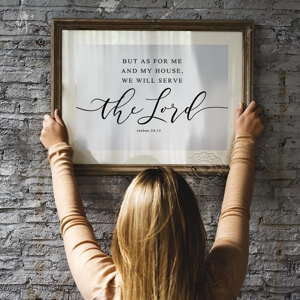 Horizontal Bible Verse Wall Art Joshua 24 15 But As For Me And My House We Will Serve The Lord Scripture Large Print Decor Re Painting Calligraphy Aliexpress